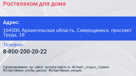 Ростелеком для дома по адресу 164500, Архангельская область, Северодвинск, проспект Труда, 18 в дальнейшем Организация, размещена в следующих категориях: