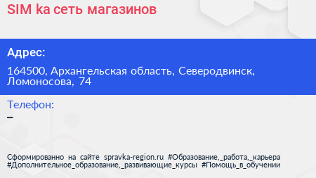 SIM-ka, сеть магазинов по адресу 164500, Архангельская область, Северодвинск, Ломоносова, 74 в дальнейшем Организация, размещена в следующих категориях: