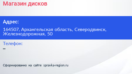 Магазин дисков по адресу 164507, Архангельская область, Северодвинск, Железнодорожная, 50 в дальнейшем Организация, размещена в следующих категориях: