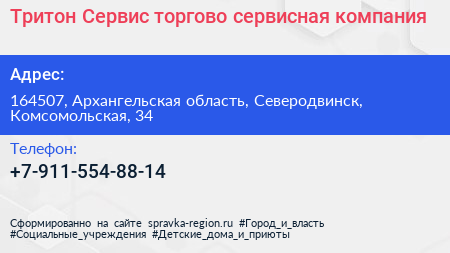 Тритон-Сервис, торгово-сервисная компания по адресу 164507, Архангельская область, Северодвинск, Комсомольская, 34 в дальнейшем Организация, размещена в следующих категориях: