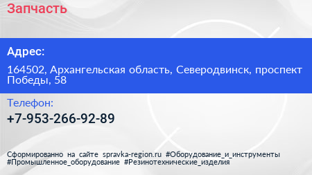 Запчасть по адресу 164502, Архангельская область, Северодвинск, проспект Победы, 58 в дальнейшем Организация, размещена в следующих категориях: