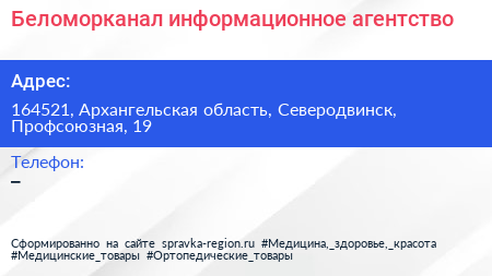Беломорканал, информационное агентство по адресу 164521, Архангельская область, Северодвинск, Профсоюзная, 19 в дальнейшем Организация, размещена в следующих категориях: