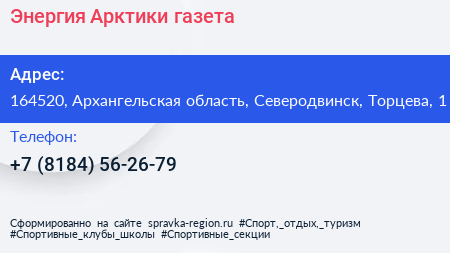Энергия Арктики, газета по адресу 164520, Архангельская область, Северодвинск, Торцева, 1 в дальнейшем Организация, размещена в следующих категориях: