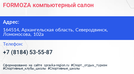 FORMOZA, компьютерный салон по адресу 164514, Архангельская область, Северодвинск, Ломоносова, 102а в дальнейшем Организация, размещена в следующих категориях:
