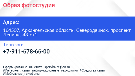 Образ, фотостудия по адресу 164507, Архангельская область, Северодвинск, проспект Ленина, 43 ст1 в дальнейшем Организация, размещена в следующих категориях: