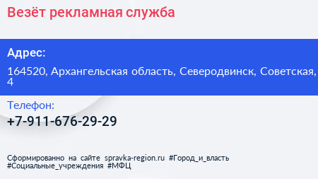 Везёт, рекламная служба по адресу 164520, Архангельская область, Северодвинск, Советская, 4 в дальнейшем Организация, размещена в следующих категориях: