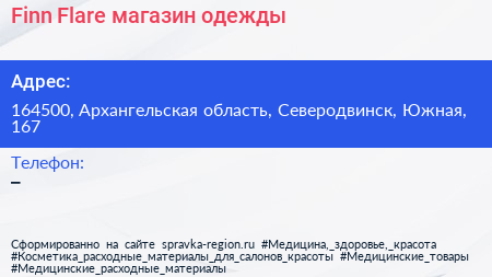 Finn Flare, магазин одежды по адресу 164500, Архангельская область, Северодвинск, Южная, 167 в дальнейшем Организация, размещена в следующих категориях: