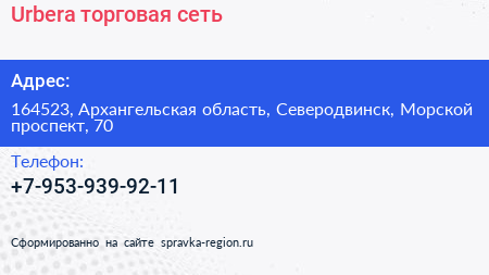 Urbera, торговая сеть по адресу 164523, Архангельская область, Северодвинск, Морской проспект, 70 в дальнейшем Организация, размещена в следующих категориях: