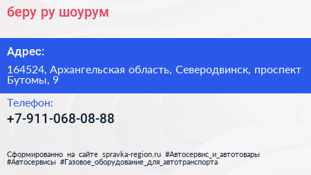 беру.ру, шоурум по адресу 164524, Архангельская область, Северодвинск, проспект Бутомы, 9 в дальнейшем Организация, размещена в следующих категориях: