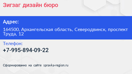 Зигзаг, дизайн-бюро по адресу 164500, Архангельская область, Северодвинск, проспект Труда, 12 в дальнейшем Организация, размещена в следующих категориях: