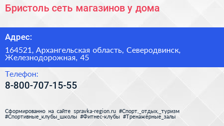 Бристоль, сеть магазинов у дома по адресу 164521, Архангельская область, Северодвинск, Железнодорожная, 45 в дальнейшем Организация, размещена в следующих категориях: