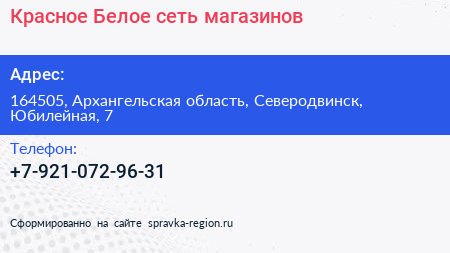 Красное & Белое, сеть магазинов по адресу 164505, Архангельская область, Северодвинск, Юбилейная, 7 в дальнейшем Организация, размещена в следующих категориях: