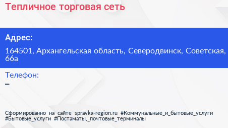 Тепличное, торговая сеть по адресу 164501, Архангельская область, Северодвинск, Советская, 66а в дальнейшем Организация, размещена в следующих категориях: