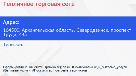 Тепличное, торговая сеть по адресу 164500, Архангельская область, Северодвинск, проспект Труда, 44а в дальнейшем Организация, размещена в следующих категориях: