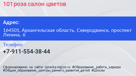 101 роза, салон цветов по адресу 164501, Архангельская область, Северодвинск, проспект Ленина, 6 в дальнейшем Организация, размещена в следующих категориях: