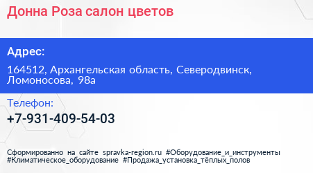 Донна Роза, салон цветов по адресу 164512, Архангельская область, Северодвинск, Ломоносова, 98а в дальнейшем Организация, размещена в следующих категориях: