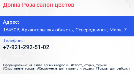 Донна Роза, салон цветов по адресу 164509, Архангельская область, Северодвинск, Мира, 7 в дальнейшем Организация, размещена в следующих категориях: