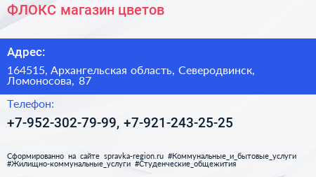 ФЛОКС, магазин цветов по адресу 164515, Архангельская область, Северодвинск, Ломоносова, 87 в дальнейшем Организация, размещена в следующих категориях: