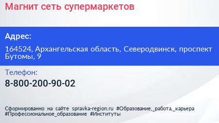 Магнит, сеть супермаркетов по адресу 164524, Архангельская область, Северодвинск, проспект Бутомы, 9 в дальнейшем Организация, размещена в следующих категориях: