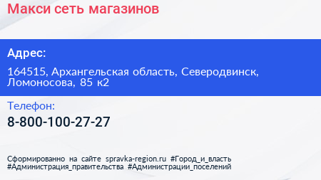 Макси, сеть магазинов по адресу 164515, Архангельская область, Северодвинск, Ломоносова, 85 к2 в дальнейшем Организация, размещена в следующих категориях: