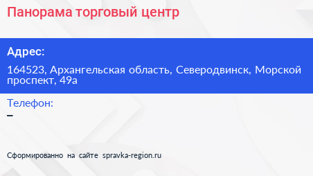 Панорама, торговый центр по адресу 164523, Архангельская область, Северодвинск, Морской проспект, 49а в дальнейшем Организация, размещена в следующих категориях: