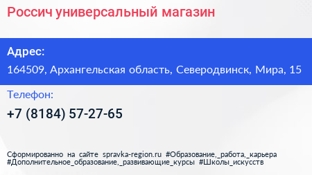 Россич, универсальный магазин по адресу 164509, Архангельская область, Северодвинск, Мира, 15 в дальнейшем Организация, размещена в следующих категориях: