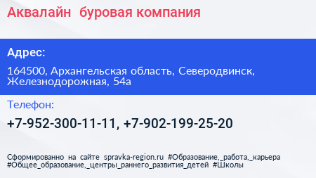 Аквалайн+, буровая компания по адресу 164500, Архангельская область, Северодвинск, Железнодорожная, 54а в дальнейшем Организация, размещена в следующих категориях: