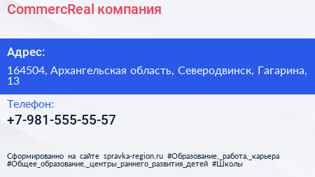 CommercReal, компания по адресу 164504, Архангельская область, Северодвинск, Гагарина, 13 в дальнейшем Организация, размещена в следующих категориях: