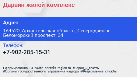 Дарвин, жилой комплекс по адресу 164520, Архангельская область, Северодвинск, Беломорский проспект, 34 в дальнейшем Организация, размещена в следующих категориях: