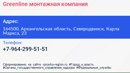 Greenline, монтажная компания по адресу 164500, Архангельская область, Северодвинск, Карла Маркса, 23 в дальнейшем Организация, размещена в следующих категориях: