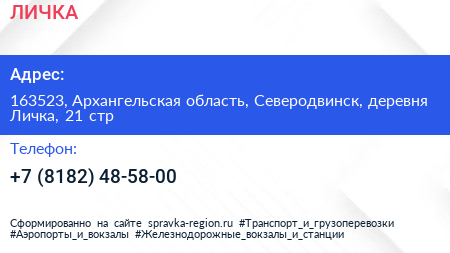 ЛИЧКА по адресу 163523, Архангельская область, Северодвинск, деревня Личка, 21 стр в дальнейшем Организация, размещена в следующих категориях: