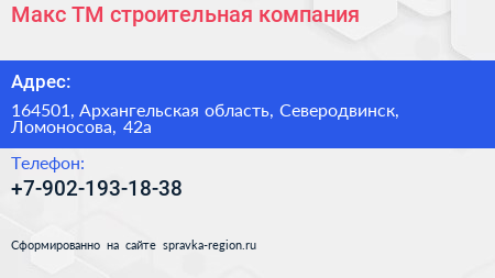 Макс-ТМ, строительная компания по адресу 164501, Архангельская область, Северодвинск, Ломоносова, 42а в дальнейшем Организация, размещена в следующих категориях: