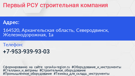 Первый РСУ, строительная компания по адресу 164520, Архангельская область, Северодвинск, Железнодорожная, 1а в дальнейшем Организация, размещена в следующих категориях: