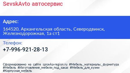 SevskAvto, автосервис по адресу 164520, Архангельская область, Северодвинск, Железнодорожная, 1а ст1 в дальнейшем Организация, размещена в следующих категориях: