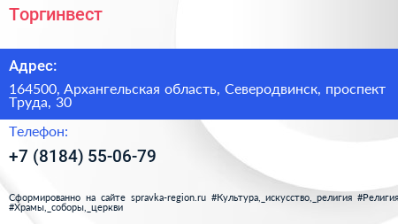 Торгинвест по адресу 164500, Архангельская область, Северодвинск, проспект Труда, 30 в дальнейшем Организация, размещена в следующих категориях: