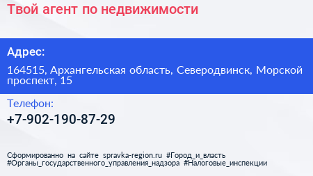 Твой агент по недвижимости по адресу 164515, Архангельская область, Северодвинск, Морской проспект, 15 в дальнейшем Организация, размещена в следующих категориях: