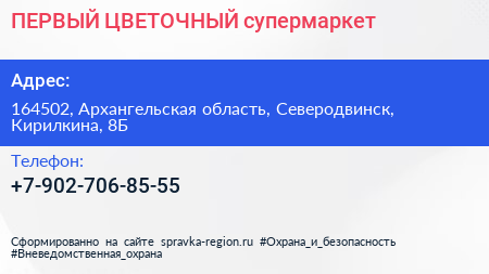 ПЕРВЫЙ ЦВЕТОЧНЫЙ, супермаркет по адресу 164502, Архангельская область, Северодвинск, Кирилкина, 8Б в дальнейшем Организация, размещена в следующих категориях: