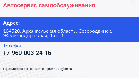 Автосервис самообслуживания по адресу 164520, Архангельская область, Северодвинск, Железнодорожная, 1а ст1 в дальнейшем Организация, размещена в следующих категориях: