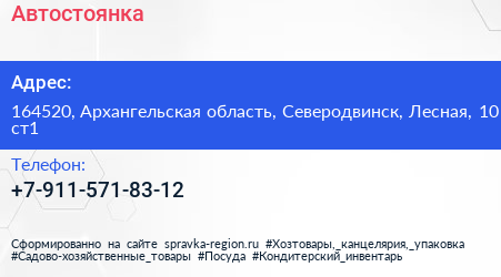 Адрес: Архангельская область, Северодвинск, Архангельское шоссе, 59 ст3