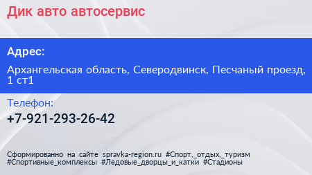 Дик-авто, автосервис по адресу Архангельская область, Северодвинск, Песчаный проезд, 1 ст1 в дальнейшем Организация, размещена в следующих категориях: