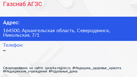 Газснаб, АГЗС по адресу 164500, Архангельская область, Северодвинск, Никольская, 7/1 в дальнейшем Организация, размещена в следующих категориях: