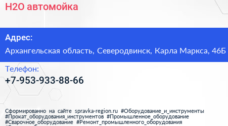 H2O, автомойка по адресу Архангельская область, Северодвинск, Карла Маркса, 46Б в дальнейшем Организация, размещена в следующих категориях: