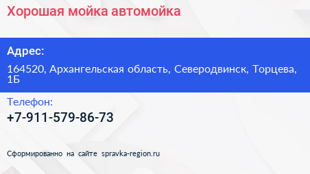 Хорошая мойка, автомойка по адресу 164520, Архангельская область, Северодвинск, Торцева, 1Б в дальнейшем Организация, размещена в следующих категориях: