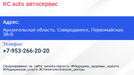 КС-auto, автосервис по адресу Архангельская область, Северодвинск, Первомайская, 38/8 в дальнейшем Организация, размещена в следующих категориях:
