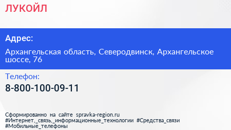 ЛУКОЙЛ по адресу Архангельская область, Северодвинск, Архангельское шоссе, 76 в дальнейшем Организация, размещена в следующих категориях: