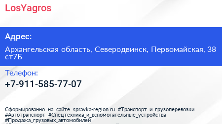 LosYagros по адресу Архангельская область, Северодвинск, Первомайская, 38 ст7Б в дальнейшем Организация, размещена в следующих категориях: