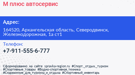 М плюс, автосервис по адресу 164520, Архангельская область, Северодвинск, Железнодорожная, 1а ст1 в дальнейшем Организация, размещена в следующих категориях: