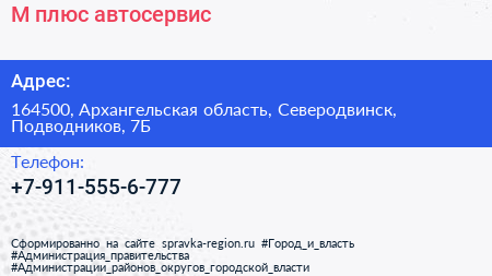 М плюс, автосервис по адресу 164500, Архангельская область, Северодвинск, Подводников, 7Б в дальнейшем Организация, размещена в следующих категориях: