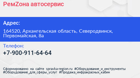 РемZона, автосервис по адресу 164520, Архангельская область, Северодвинск, Первомайская, 8а в дальнейшем Организация, размещена в следующих категориях: