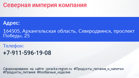 Северная империя, компания по адресу 164505, Архангельская область, Северодвинск, проспект Победы, 25 в дальнейшем Организация, размещена в следующих категориях: